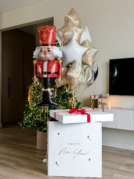 Коробка с шарами «Добрый Щелкунчик» в интернет-магазине OCEAN BALLOONS. Заказать с доставкой! Тел.: +7 (495) 773-43-75.